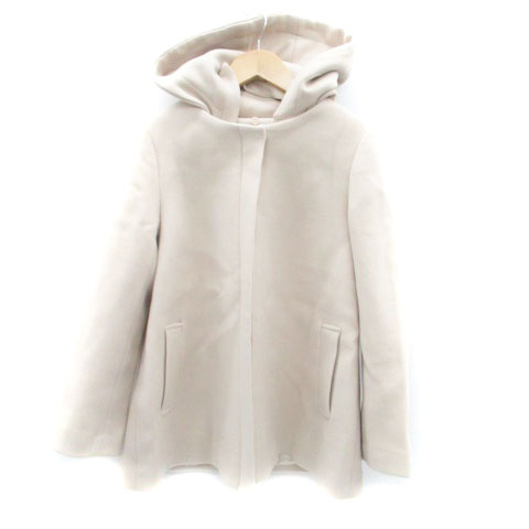 【中古】カージュ Khaju ノーカラーコート ミドル丈 フード付き 2way ウール 36 ベージュ /HO8 レディース