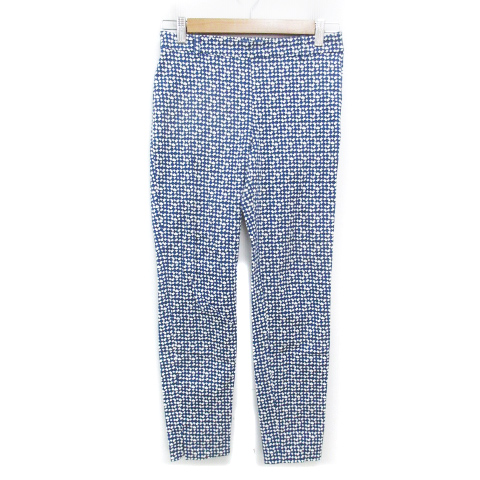 【中古】ザラウーマン スキニーパンツ ロング丈 ストレッチ素材 総柄 スリット S 白 紺 ホワイト ネイビー レディース