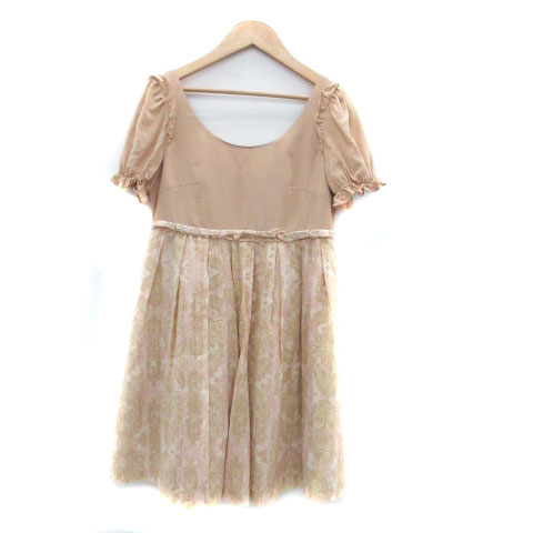【中古】ジルスチュアート ワンピース ラウンドネック 半袖 ミニ丈 総柄 シルク 2 茶色 ブラウン レディース