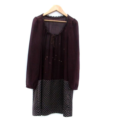 【中古】シェリーラファム ドッキングワンピース 長袖 ひざ丈 シースルー M ワインレッド ダークブラウン レディース