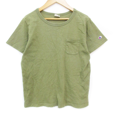 【中古】チャンピオン CHAMPION Tシャツ カットソー 半袖 ラウンドネック ロゴ刺? M カーキ /FF10 レディース