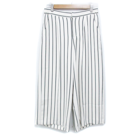 【中古】ボッシュ ガウチョパンツ ワイドパンツ 七分丈 ストライプ柄 40 白 黒 ホワイト ブラック /FF21 レディース