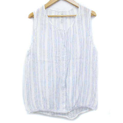 【中古】ベルローズ ブラウス シャツ カットソー ノースリーブ ノーカラー 透け感 ストライプ柄 1 白 青 レディース
