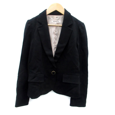 【中古】アプワイザーリッシェ テーラードジャケット シングル 総裏地 ミドル丈 リボン 1 黒 ブラック レディース