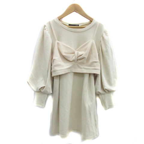【中古】ヘザー Heather カットソー 長袖 ラウンドネック 無地 ビスチェ付き F アイボリー ライトベージュ レディース