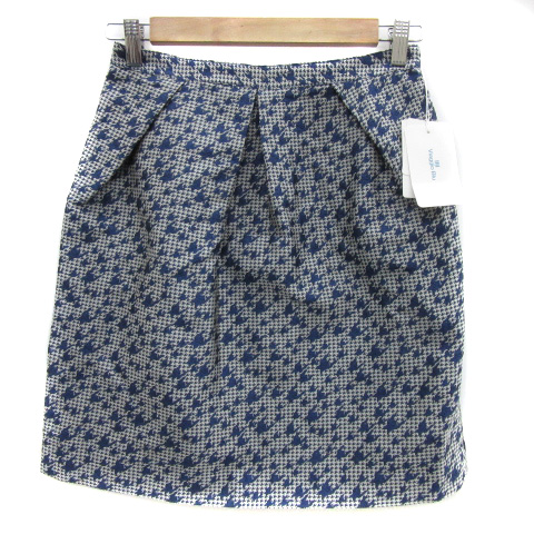 【中古】未使用品 ビアッジョブルー タイトスカート ひざ丈 千鳥格子柄 2 青 ブルー ライトグレー レディース
