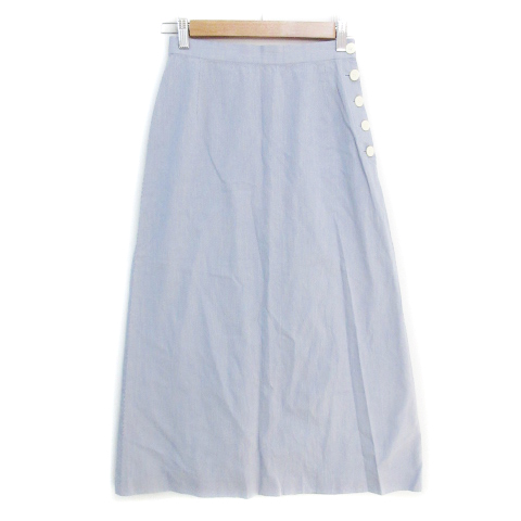 【中古】ヨシエイナバ フレアスカート ロング丈 マキシ丈 ストライプ柄 2 青 白 ブルー ホワイト /FF44 レディース