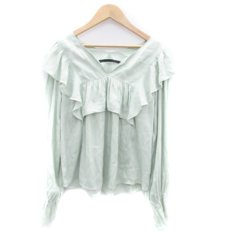 【中古】KBF+ アーバンリサーチ ブラウス カットソー Vネック 長袖 フレアスリーブ one 黄緑 レディース