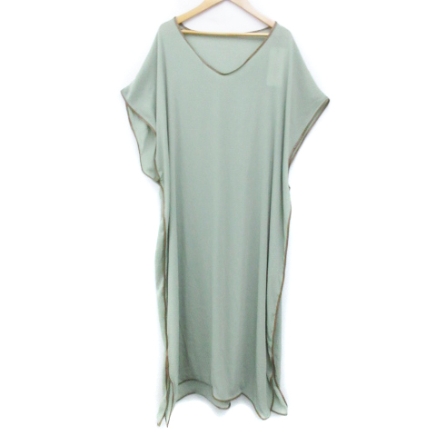 【中古】未使用品 セレクトモカ ワンピース 薄手 ロング丈 半袖 Vネック シースルー M ミントグリーン 茶 レディース