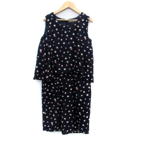 【中古】ビームスライツ ワンピース ラウンドネック ノースリーブ ひざ丈 総柄 36 マルチカラー 紺 レディース