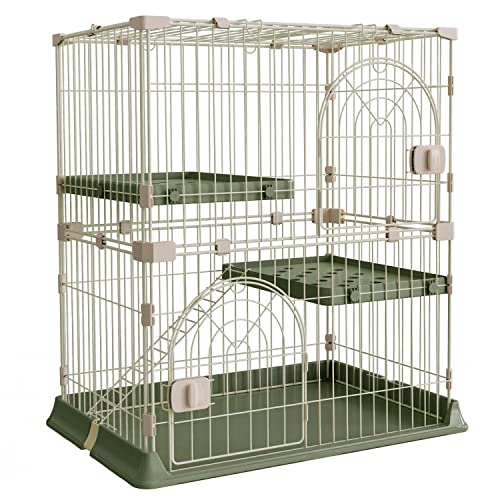 Alebert 猫ケージ キャットケージ 幅70*奥行43*高さ89cm 猫 ケージ 2段 大型 ペットケージ 折りたたみ ドア付き ワイド扉 多頭飼い 脱走
