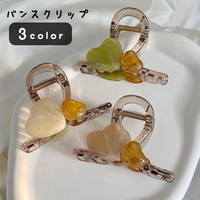 バンスクリップ ヘアクリップ 髪留め レディース 女性 ヘアアクセサリー ファッション雑貨 ハート 飾り付き 半透明 クリア ホ
