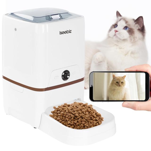 Iseebiz 自動給餌器 カメラ付き 犬猫用 5L大容量 水洗い可能 スマホ遠隔操作 双方向音声 一日6回給餌可能 ペットフード 10秒録音可 ビデ