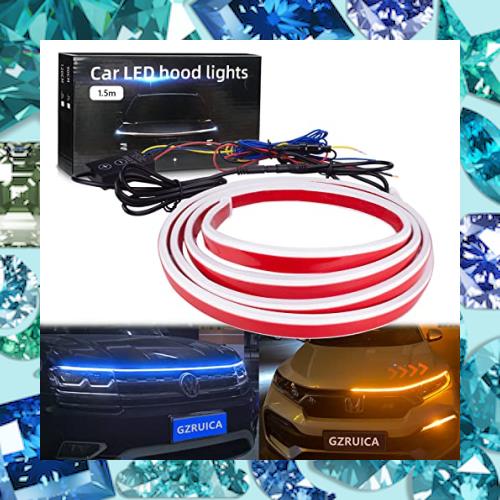 【商品仕様】LEDテープ フードライト( 流れるウインカー)/ 色:ブルー/アンバー切り替え可能 / 電圧:DC12V / パワー:7-16W / 電流:0.67A / 使用寿命:50000時間以上 / 防水加工済み / 材料:シリコン / 高輝度 / 長さ:150CM / ご注意:ギフトボックスの様式は二つがあって、ランダムに出荷します。