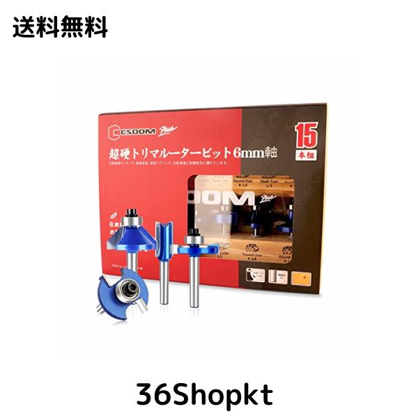 CSOOM Pro プロ木工トリマービットセット 超硬ルーターセット プレミアムモデル15本組 軸径6mm 窓木製収納ケース付き 溝ほり・面取り・飾