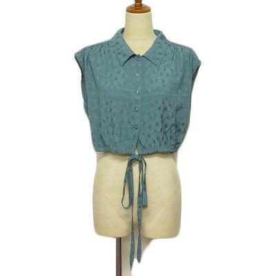 【中古】リリーブラウン Lily Brown ブラウス ノースリーブ ショート丈 リボン 刺繍 F 緑 グリーン レディース