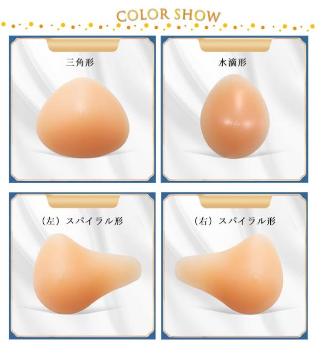 | 乳がん用 シリコンパッド 全摘対応 4type 200-250g 専用カバー付き 柔らかいシリコンなのでよりリアルな質感を実現します パッドの裏側の特殊加工で蒸れによる不快感を軽減します 安心、安全な医療用シリコン100%を使用しています | |