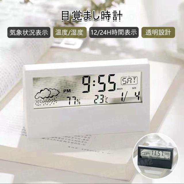 デジタル時計 透明目覚まし 多機能 置き時計【あす楽】クロック カレンダー卓上 時計 温度計 湿度計 寝室 室内 旅行携 おしゃれ