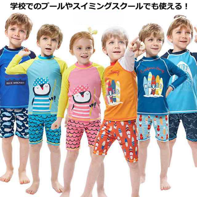 ベビー水着 キッズ スイムウェア セパレート 長袖 長袖 水着 ラッシュガード 上下セット ハーフパンツ 子供 男の子 幼稚園 子供用 日焼け防止 女の子 保育園 水遊び プール ショートパンツ