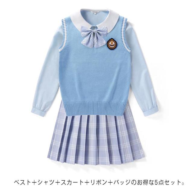 | 生地や裁縫にこだわっているので、何回でも洗濯ができてコスパ抜群。 人気の女子用制服5点セット。 ベスト+シャツ+スカート+リボン+バッジのお得な5点セット。 中学生・高校生の学生制服や行事ごと、なんちゃって制服にもおすすめです。 通学用はもちろん、入学式、学園祭、文化祭、結婚式、発表会など、フォーマルなシーンにもピッタリなスーツです。 | |