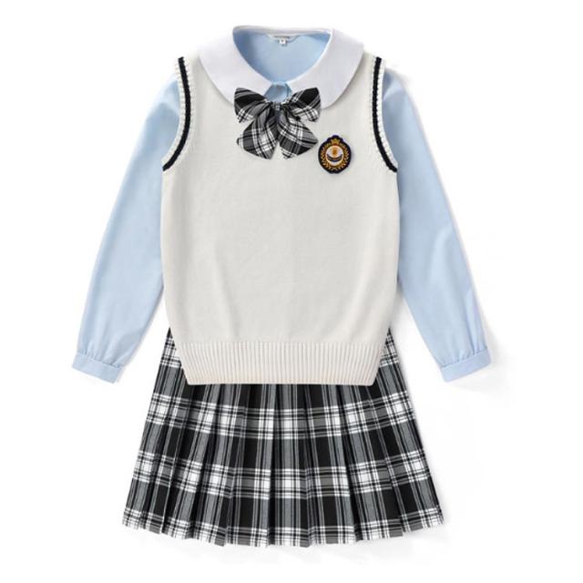 チェックスカート 送料無料 上下セット ニットベスト 制服 スーツ 女子 学園祭 長袖シャツ 発表会 5点セット コスプレ衣装 JK制服 リボン スクール 通学 学生服 卒業式 入学式 女子高生 女子 仮装 コスチューム 可愛い 学生制服