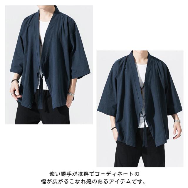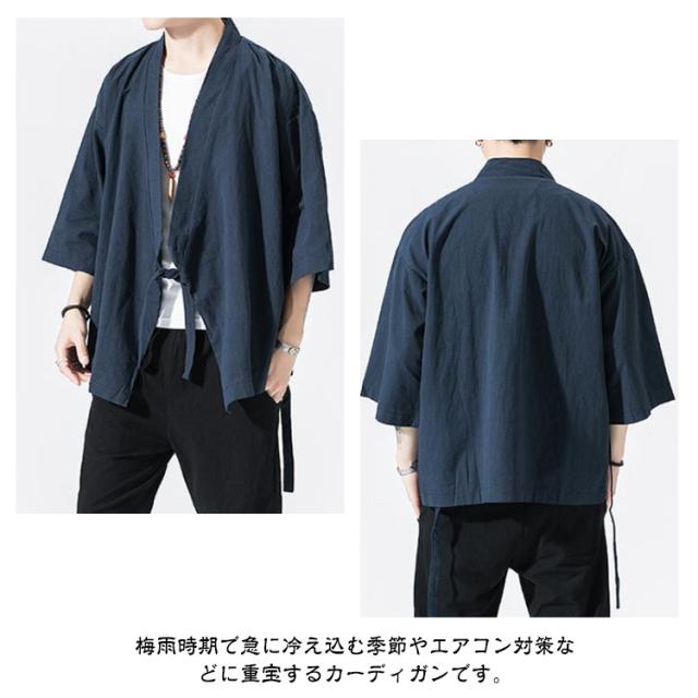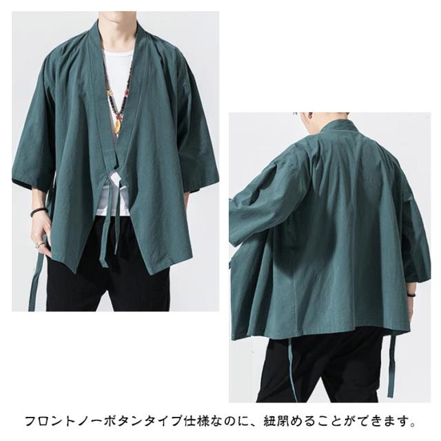 綿麻カーディガン 甚平 着物 春物 羽織 七分袖 浴衣風 カジュアル 無地 ショート丈 和風 アウター ジャケット メンズトップス メンズ 父の日 甚平風 夏物 大きサイズ チャイナ風 トレロ 春夏秋 花火大会 綿麻カーディガン おしゃれ お祭り M L XL 2XL 3XL 4XL リネン