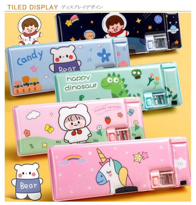 筆箱 筆箱・筆入れ コンパクト 箱型 筆入れ 女の子 両開き 両面 小学生 卒園祝い ペンケース 子供 男の子 可愛い ソフトペンケース ふでばこ 小学生 文房具 入学準備 ギフト 入学祝い プレゼント 小学校 卒園 新一年生 新1年生 鉛筆削り付き