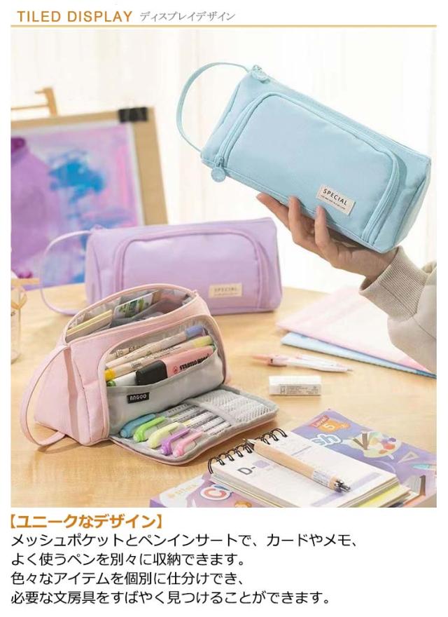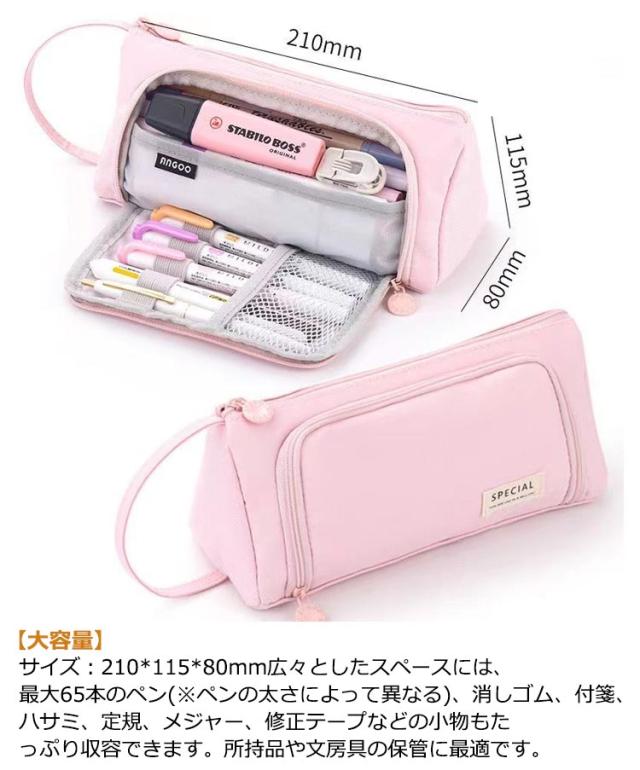 | 見た目がおしゃれで高級、快適な手触りと優れる耐久性なペンケース 【大容量】 サイズ:210*115*80mm広々としたスペースには、最大65本のペン(※ペンの太さによって異なる)、消しゴム、付箋、ハサミ、定規、メジャー、修正テープなどの小物もたっぷり収容できます。所持品や文房具の保管に最適です。 【高品質の素材】 軽量で耐久性のある素材は,清掃しやすく,ダブルジッパーで便利に開閉できます。見た目がおしゃれで高級、快適な手触りと、中に入れた物をちゃんと守ることが出来ます。 【多機能】 ペン袋としてだけでなく、化粧品バッグ、クラフトバッグ、旅行または化粧品バッグ、3C製品またはアクセサリーバッグなど、収納イヤホン、スマートウォッチ、充電ケーブル、、口紅化粧品などにも使えます。 【ユニークなデザイン】 メッシュポケットとペンインサートで、カードやメモ、よく使うペンを別々に収納できます。色々なアイテムを個別に仕分けでき、必要な文房具をすばやく見つけることができます。 【携帯便利】 軽量でコンパクト、バックパックに簡単入れ、通常のペンシルケースよりも場所を取りません、毎日の通学と通勤に最適です。これは、息子と娘、若者と大人、作家とアーティストへの卒業、誕生日プレゼント、学校や旅行用品への贈り物として最適です。 | |