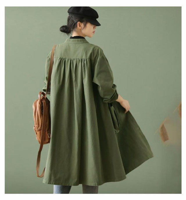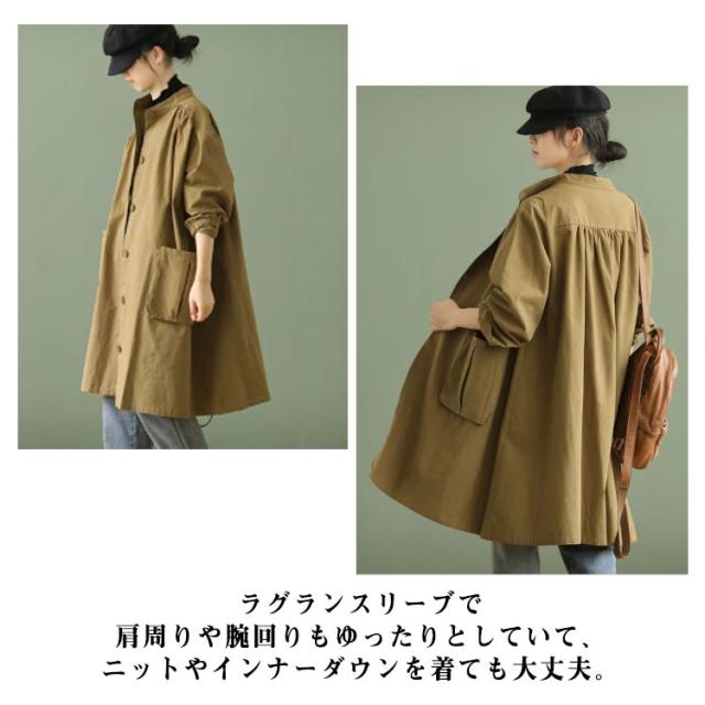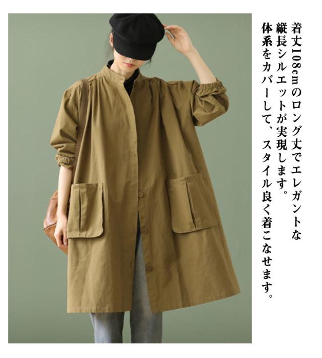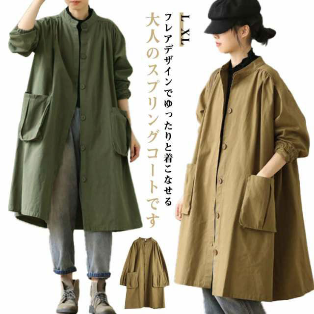 | フレアデザインでゆったりと着こなせる大人のスプリングコートです。 ラグランスリーブで肩周りや腕回りもゆったりとしていて、ニットやインナーダウンを着ても大丈夫。 着丈108cmのロング丈でエレガントな縦長シルエットが実現します。体系をカバーして、スタイル良く着こなせます。 通勤にも使えるシンプルなデザイン。前を閉めてもすらっと脚を長く見せてくれます。 サイズ展開は大きいサイズまで揃えたので40代50代の方まで体型にあったものをお選び頂けます。 | |
