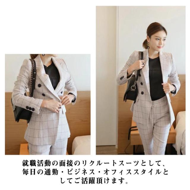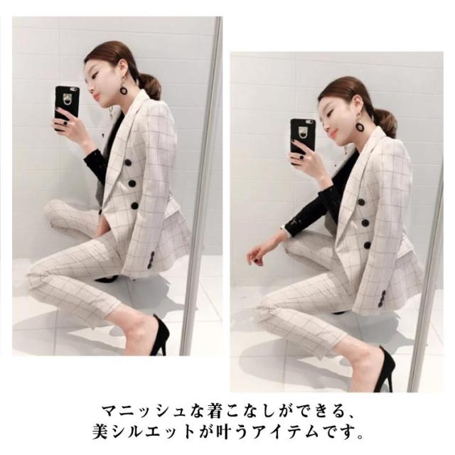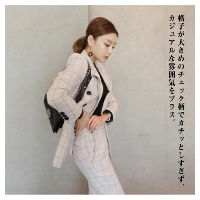 スリム パンツスーツ テーラードジャケット セットアップ チェック アンクル丈 20代 パンツスーツ 2点セット チェック柄スーツ カジュアル 40代 可愛い フェミニン 通勤服 オフィス 女性 入学式 30代 キュート 春 秋 冬 レディース