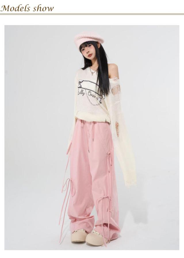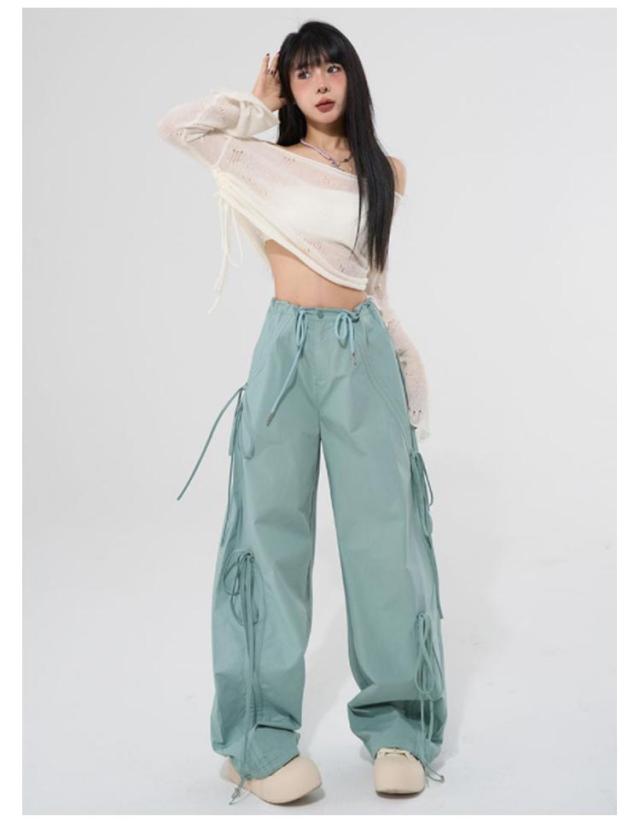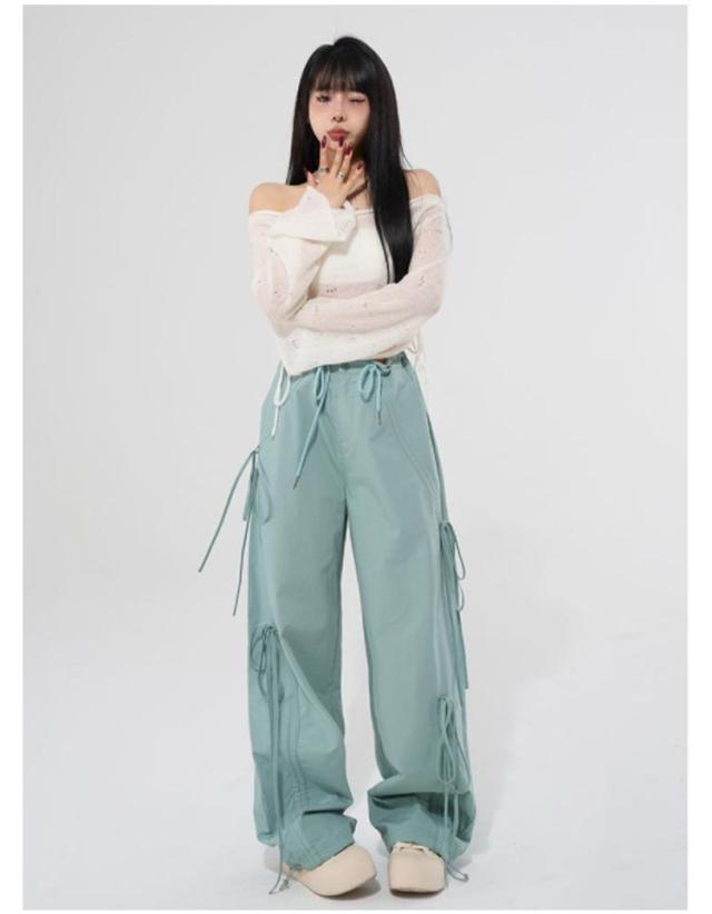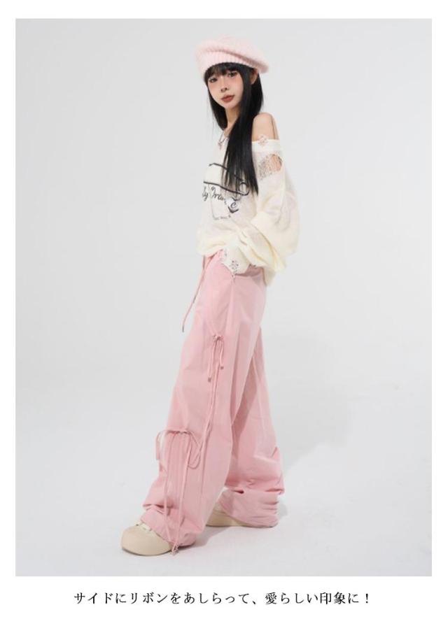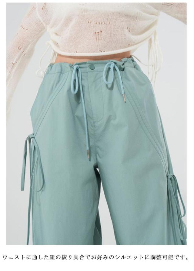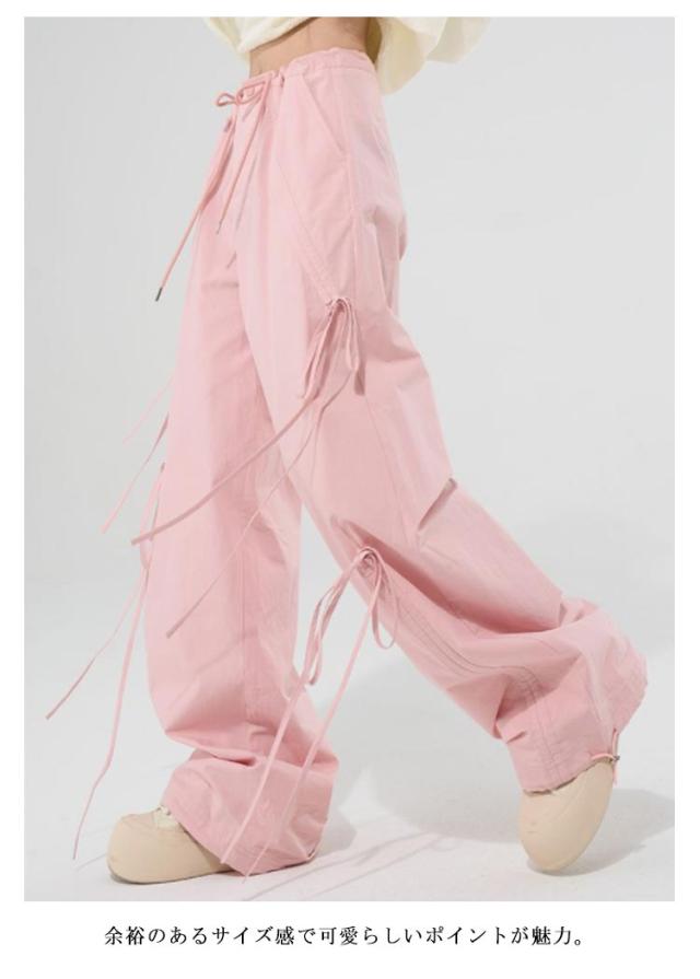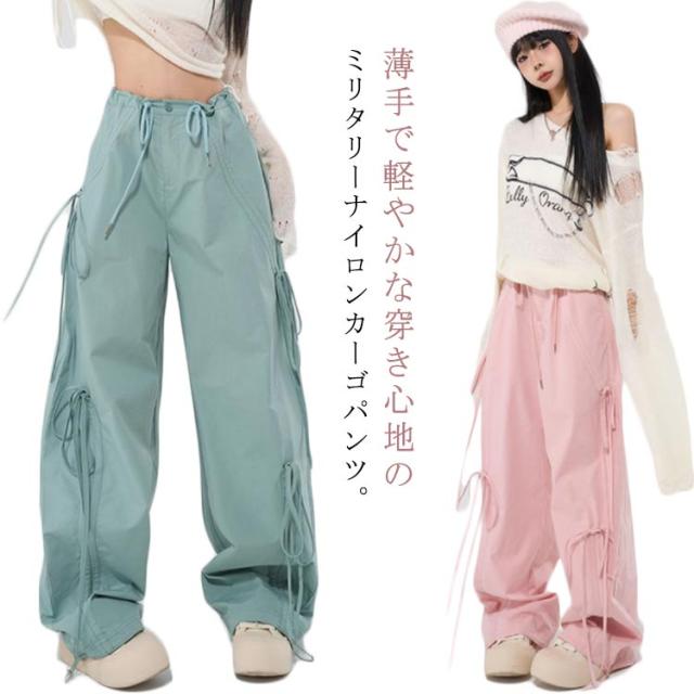 レディース ジョガーパンツ 長ズボン ボトム ミリタリーパンツ 薄手 サイドリボン 10分丈 動きやすい 作業着 女性用 カーゴ ハイウエスト カジュアル シンプル 韓国ファッション かっこいい ボトムス 人気 リボンポイントカーゴパンツ