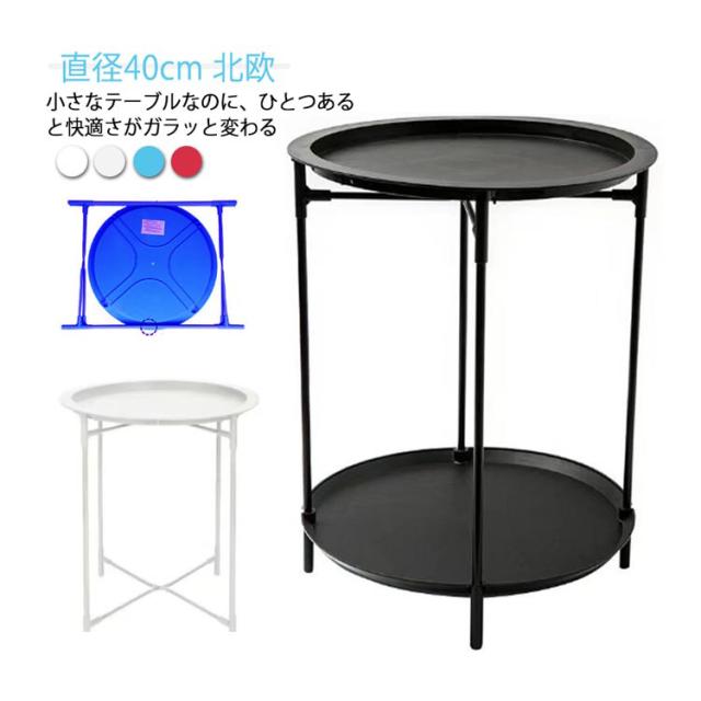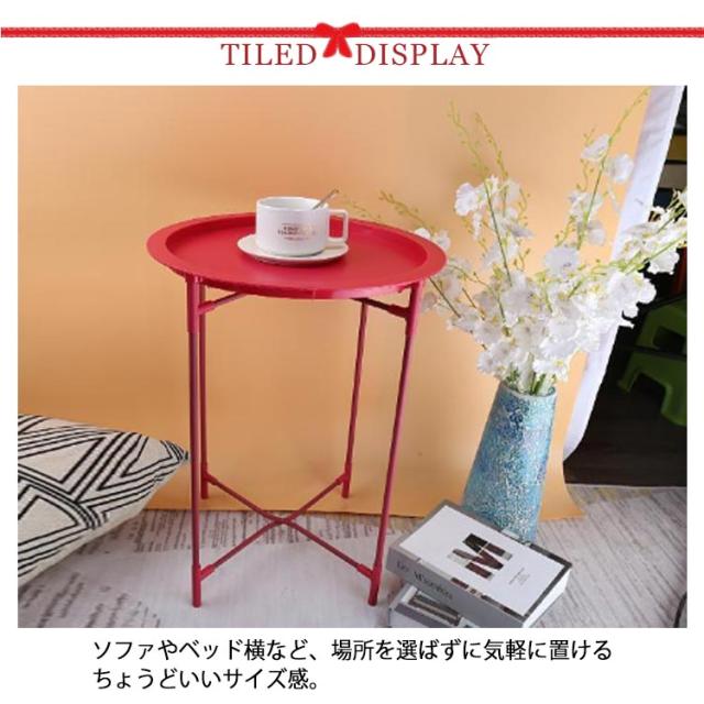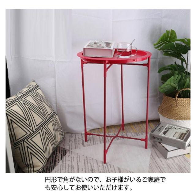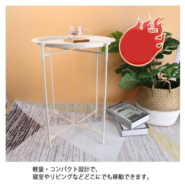 サイドテーブル スチール ソファーテーブル おしゃれ ナイトテーブル 丸型 北欧 お洒落 折りたたみ シンプル ミニテーブル コーヒーテーブル ベッドサイド カフェ風 サイドテーブル 組立簡単 高さ50.5cm インテリア ギフト プレゼント