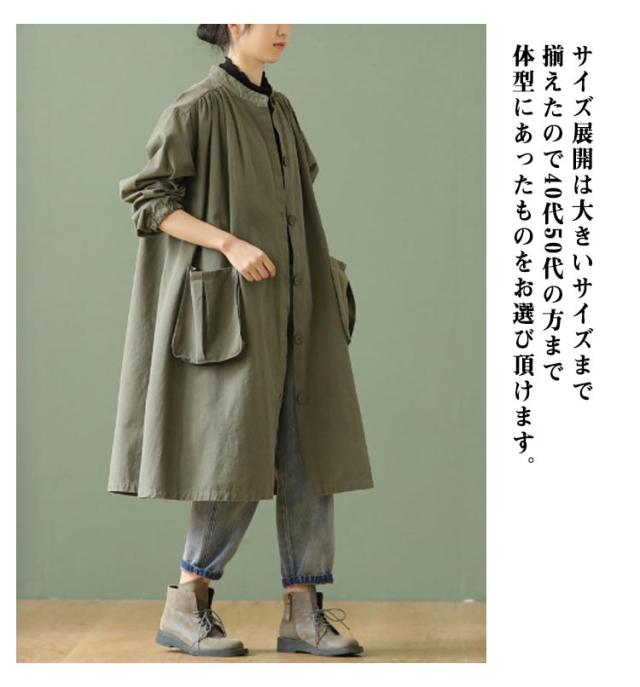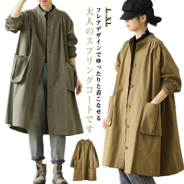 | フレアデザインでゆったりと着こなせる大人のスプリングコートです。 ラグランスリーブで肩周りや腕回りもゆったりとしていて、ニットやインナーダウンを着ても大丈夫。 着丈108cmのロング丈でエレガントな縦長シルエットが実現します。体系をカバーして、スタイル良く着こなせます。 通勤にも使えるシンプルなデザイン。前を閉めてもすらっと脚を長く見せてくれます。 サイズ展開は大きいサイズまで揃えたので40代50代の方まで体型にあったものをお選び頂けます。 | |