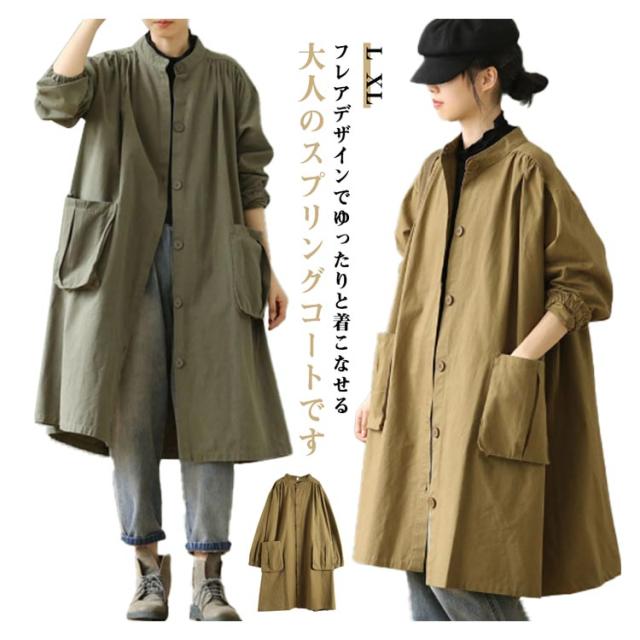 シングル ビジネスコート レディース スプリングコート レディース スプリングコート 通勤 50代 スタンドカラーコート 春コート アウター ビジネス トレンチコート フォーマル ライトアウター コート 定番 無地 カジュアル オフィス ベージュ