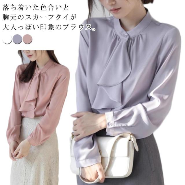 スカーフタイ シャツ ボウタイ オフィス ブラウス ビジネススーツ ママスーツ インナー ボウタイブラウス レディース フォーマルブラウス ボウタイブラウス プチハイネック 長袖 大人可愛い セレモニー フォーマル 卒園式 入園式 入学式 卒業 結婚式