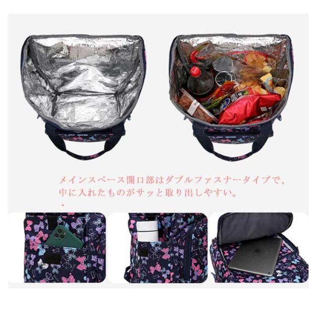 | ・キャリー付の便利な2wayリュック。 ・キャリーバッグや、リュックとして2WAYで使用できるキャリーバッグです。 ・キャリーバッグとして使用すれば、空港や電車移動、出張時など重い荷物をラクに運ぶことができます。 ・リュックとして使用する際は、両手が自由に使えるようになります。 ・メインスペース開口部はダブルファスナータイプで、中に入れたものがサッと取り出しやすい。 ・内側にはシルバーコーティング加工済みで、生鮮食材の持ち運びも大丈夫! ・急な天候変化にも安心の高い撥水効果 ・夜でも安心の反射テープ付き | |