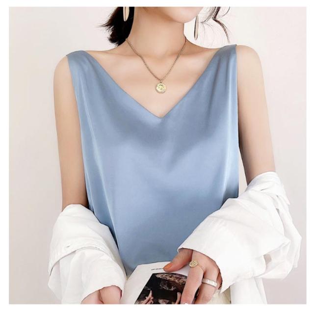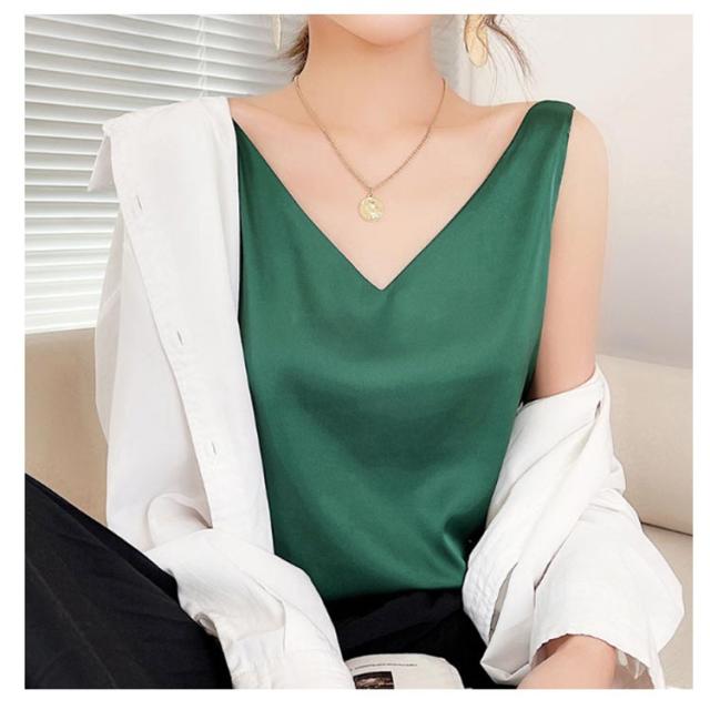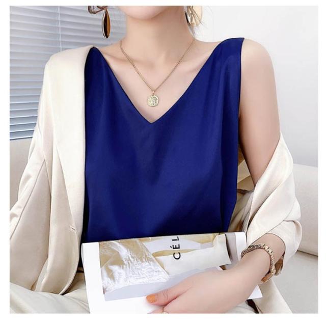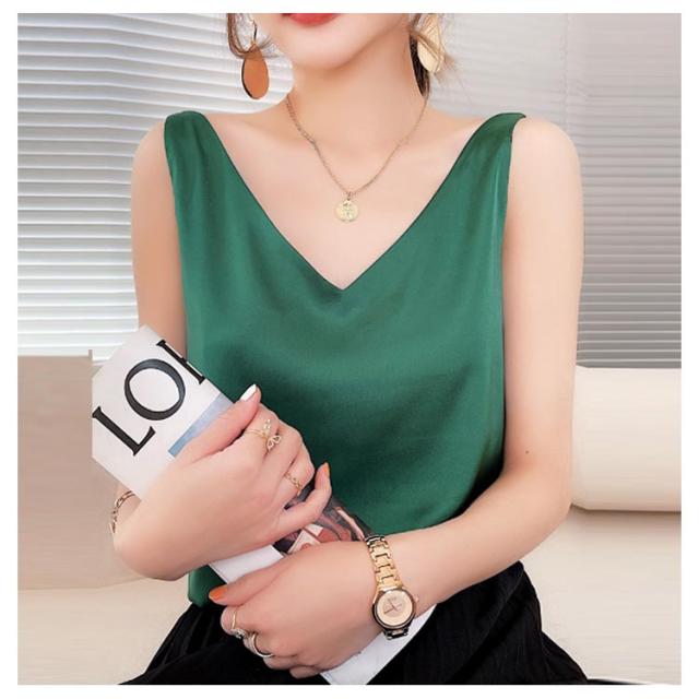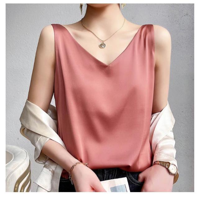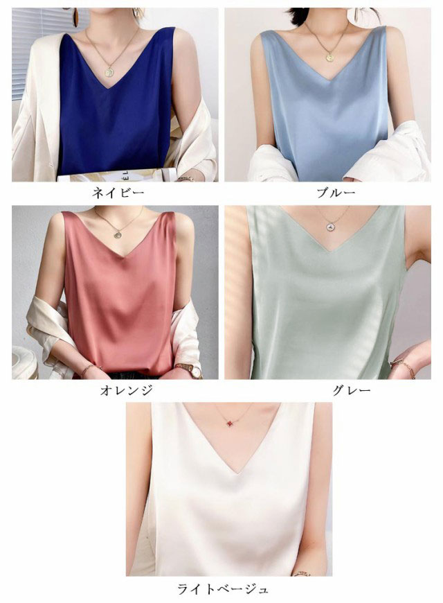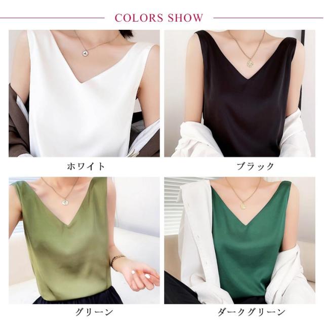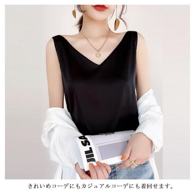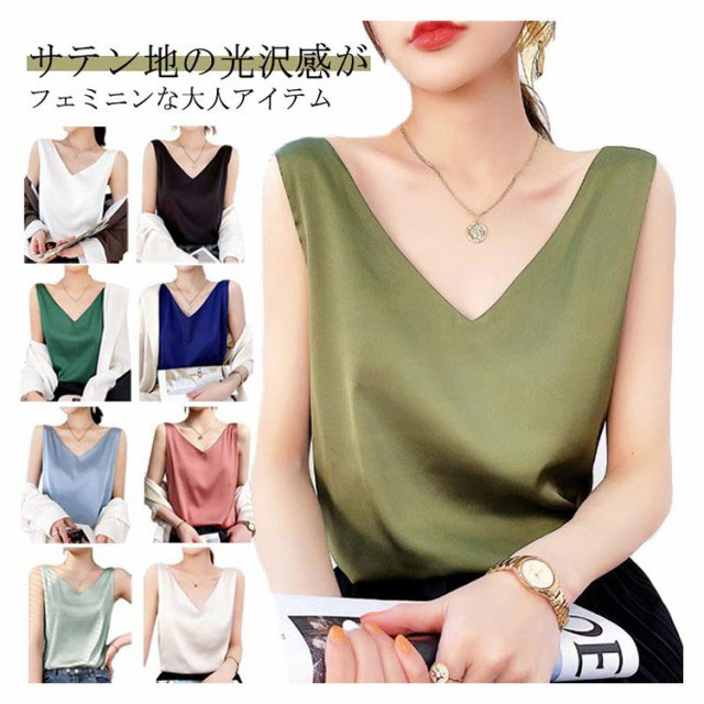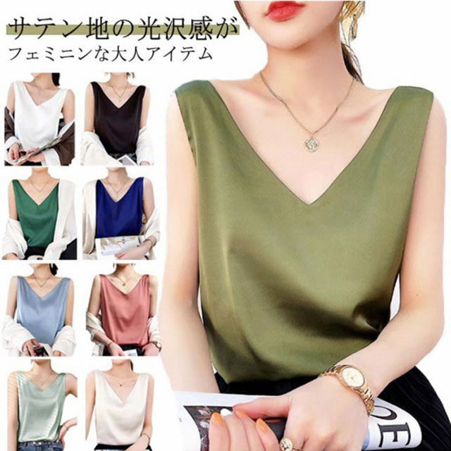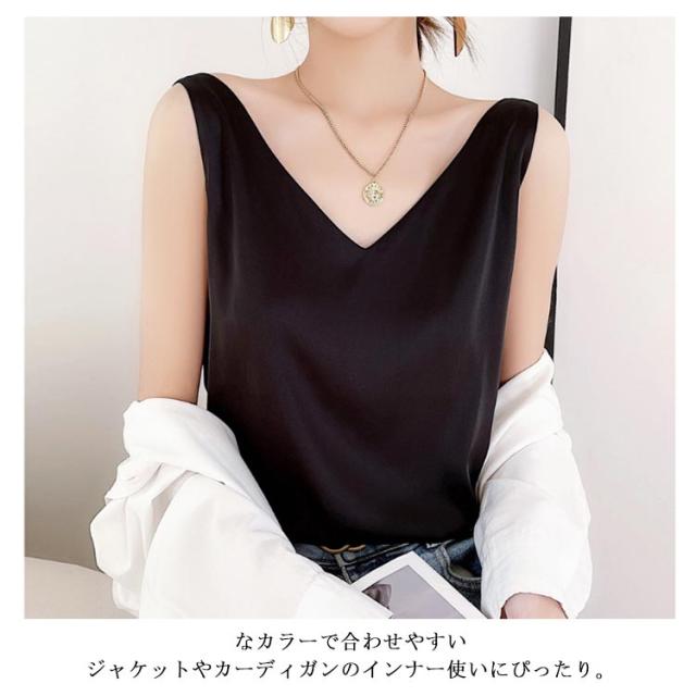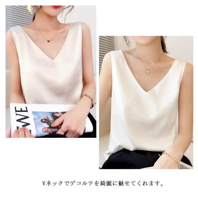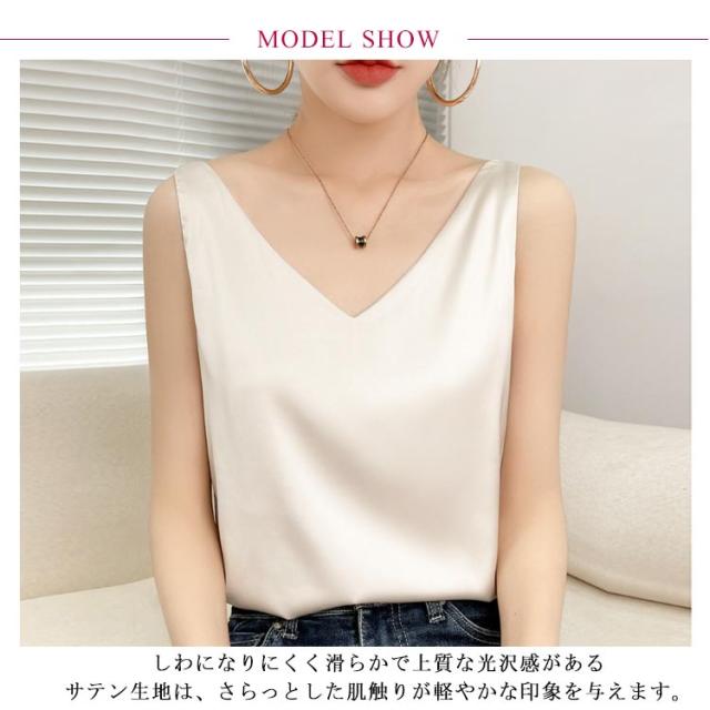 トップス 涼しい キャミソール ブラウス きれいめ レディース ノースリーブ Vネック インナー サテン 光沢感 サテン タンクトップ おしゃれ シルクタッチ サテン フォーマル オフィス 通勤 OL シンプル 20代 30代 40代 50代
