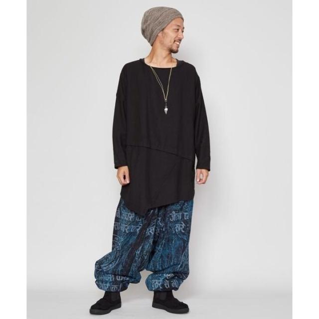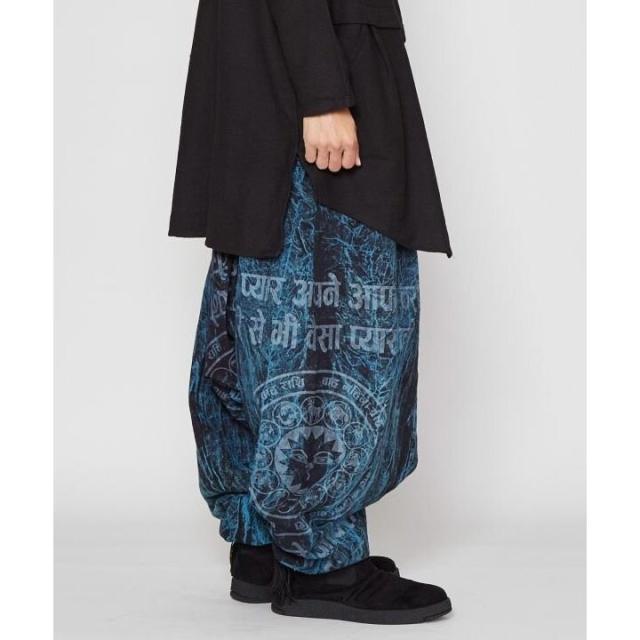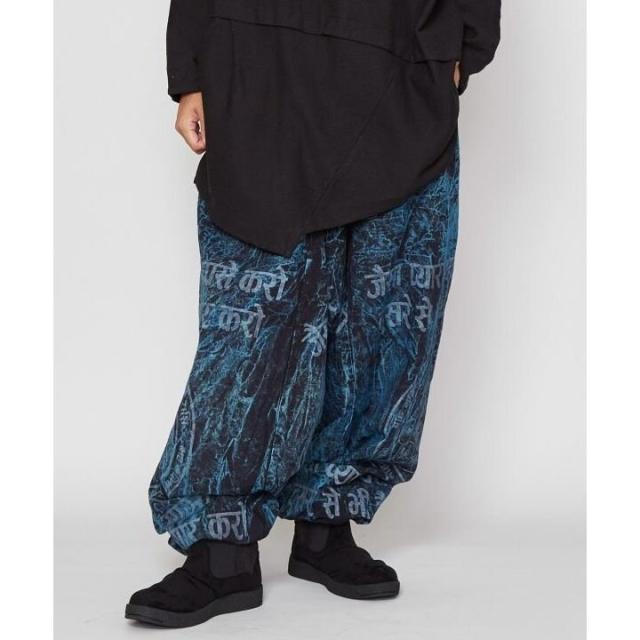 唯一無二を身に纏う。星座モチーフのプリントをし、さらにアシッドウオッシュをかけ、風合いを出したサルエルパンツ。ゆったり着こなせるサイズ感であらゆるシーズンでも使いやすい一枚。ウエストと裾はゴム仕様で、オーバーサイズながらも女性にもおすすめ。圧倒的な存在感をあなたに。ネパールメイドの素材感、手作業ならではの1点1点異なる風合いをお楽しみ下さい。
