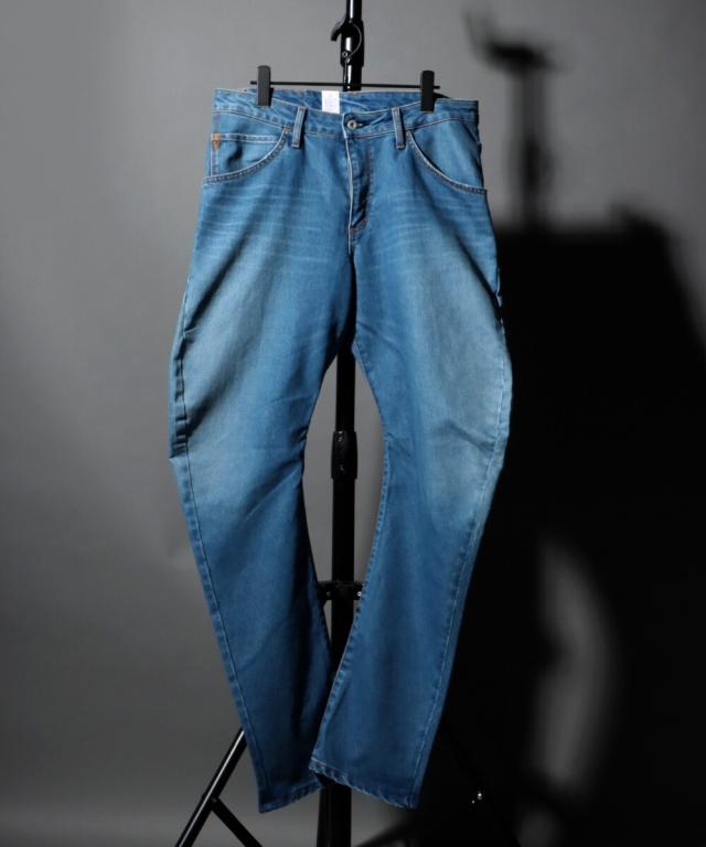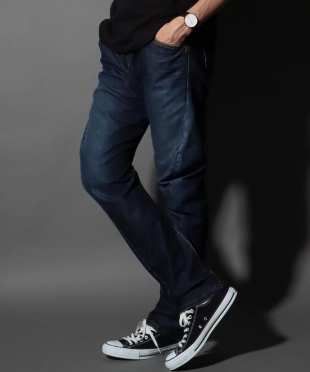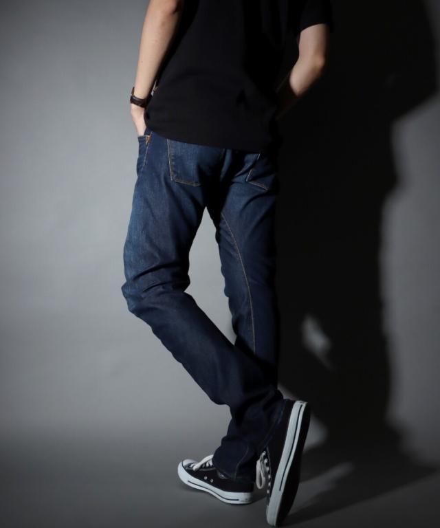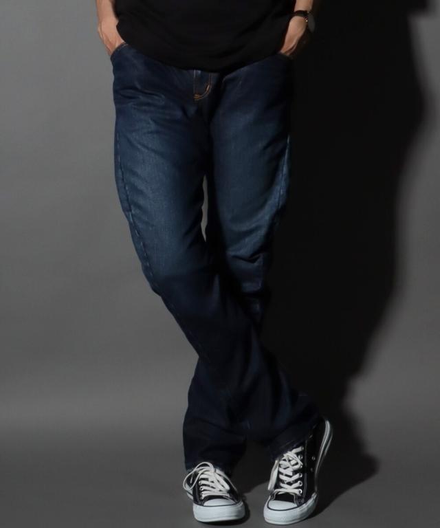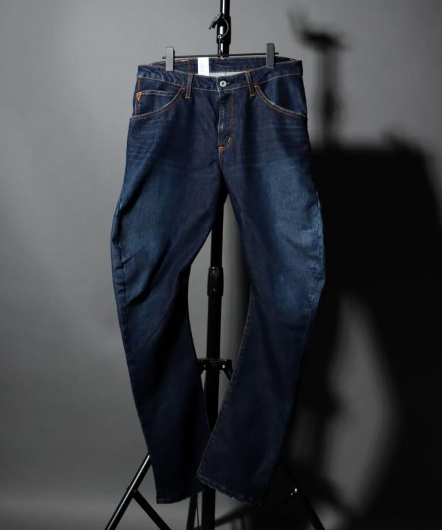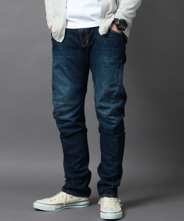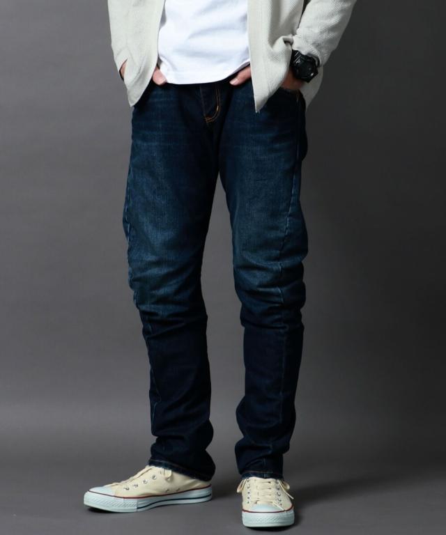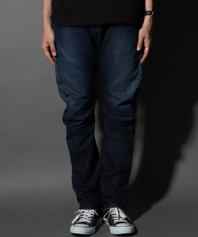 3D立体裁断 レギュラーテーパード デニムパンツ『CAMPFIRE 第3弾』ウォッシュ加工デニム