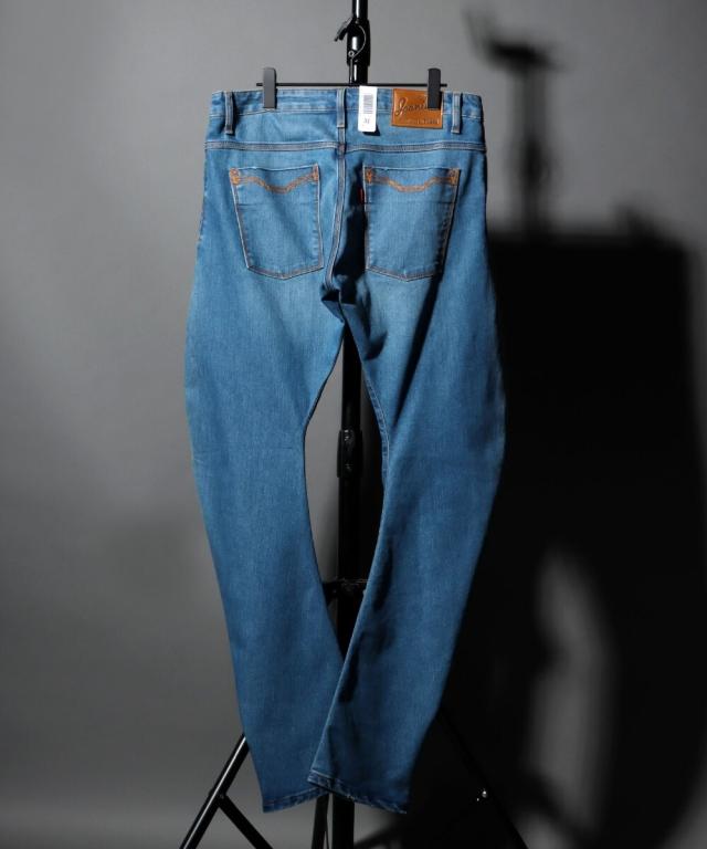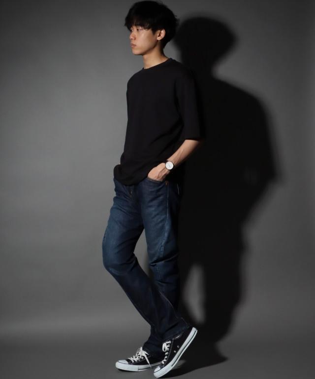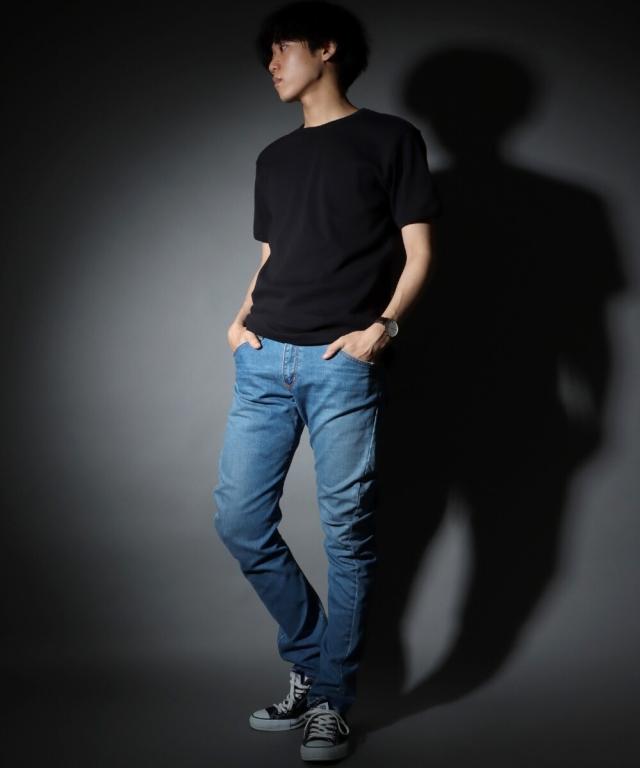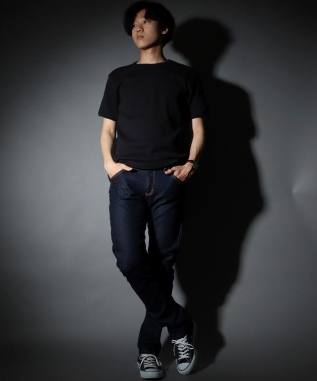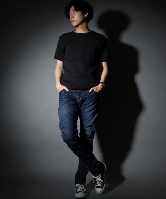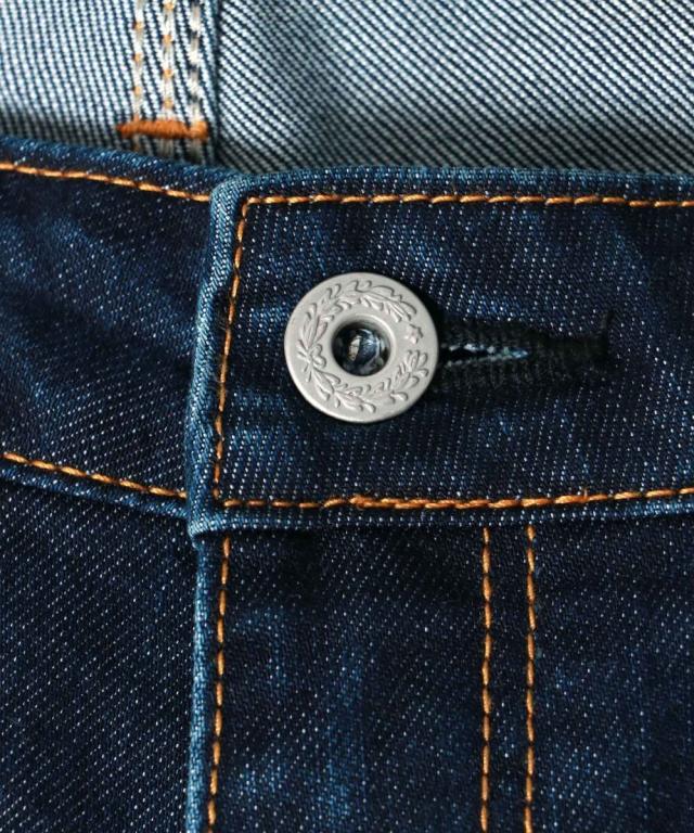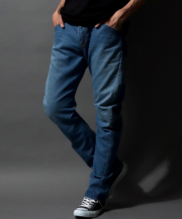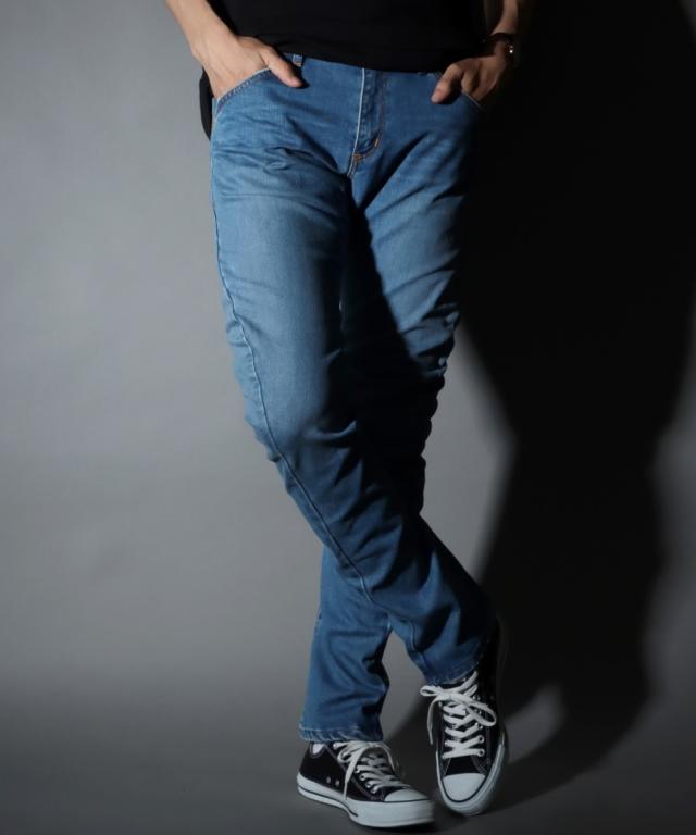 3D立体裁断 レギュラーテーパード デニムパンツ『CAMPFIRE 第3弾』ウォッシュ加工デニム