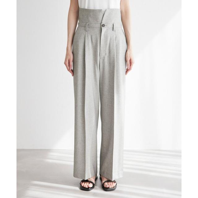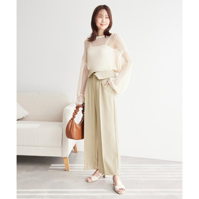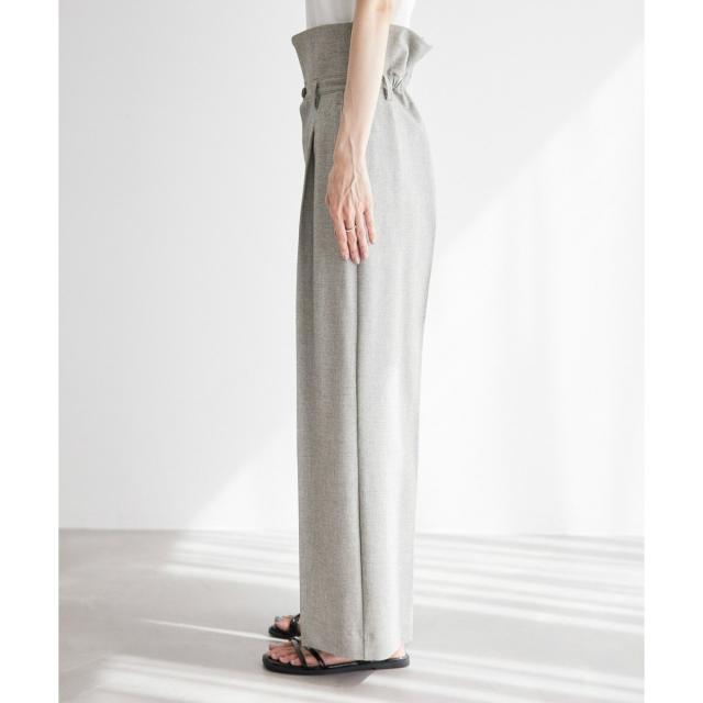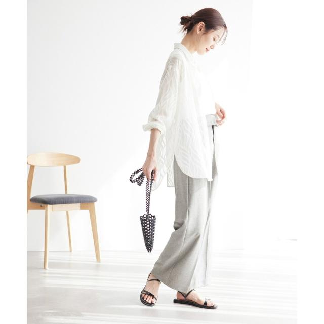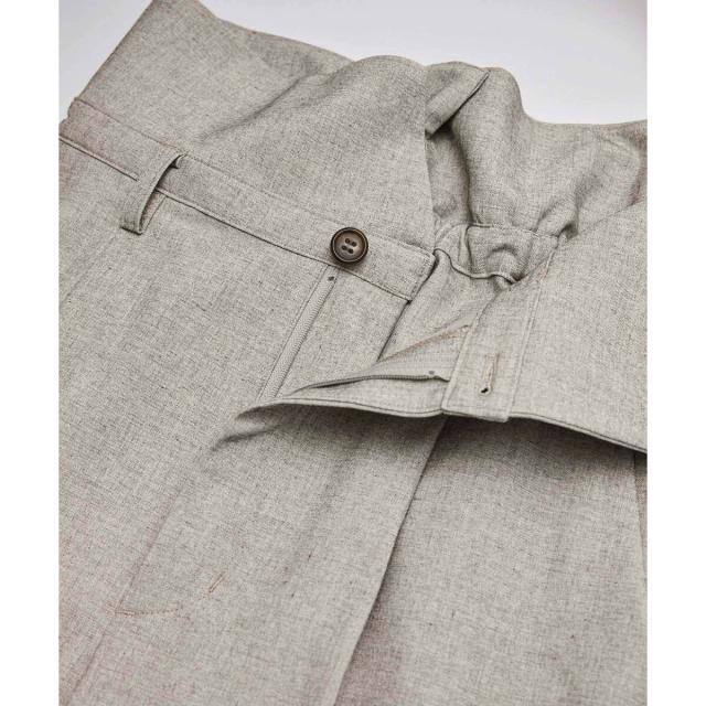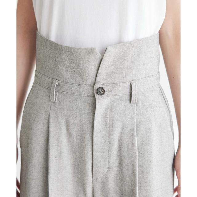 ・麻のナチュラルな風合いを活かした、シャンブレー素材のワイドパンツ。