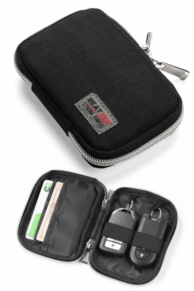 - 表面にはテフロン加工が施されているので撥水性があり、雨をはじき汚れに強くなっています。スマートキー専用収納ポケット付きなので、他の鍵と擦れるのを防ぎます。ファスナーは開閉しやすいダブルファスナーです。
