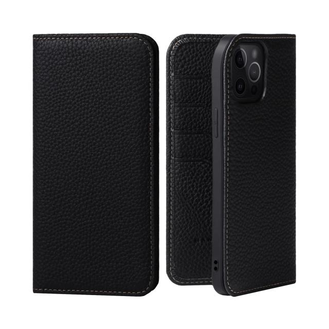 [HANATORA] iPhone13 Pro Max ケース 手帳型 本革 シュリンクカーフレザー スマホケース 耐衝撃 磁石不使用 マグネットなし ハンドメイド ギフトにも最適品 ダイアリーケース Edel ブラック PH-13ProMax-Black