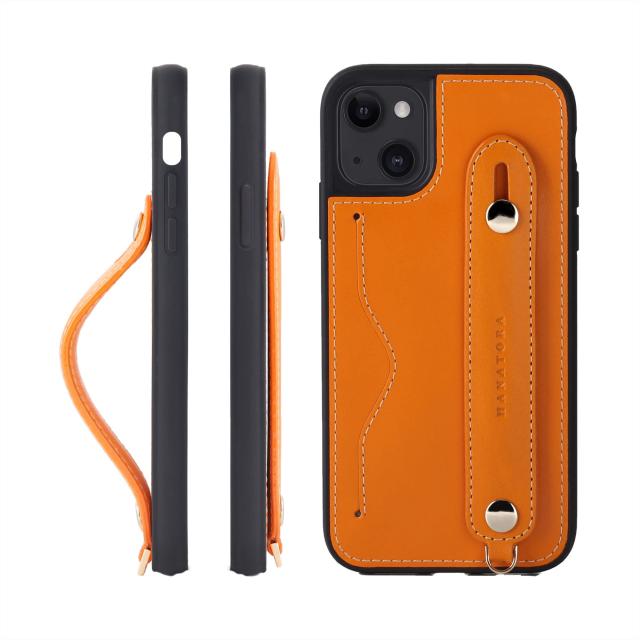 [HANATORA] iPhone 15 ケース 本革 グリップケース レザー ストラップ付属 イタリア製牛革 ヌメ革 片手操作 カード収納 スタンド機能 メンズ レディース オレンジ CGH-15-Orange