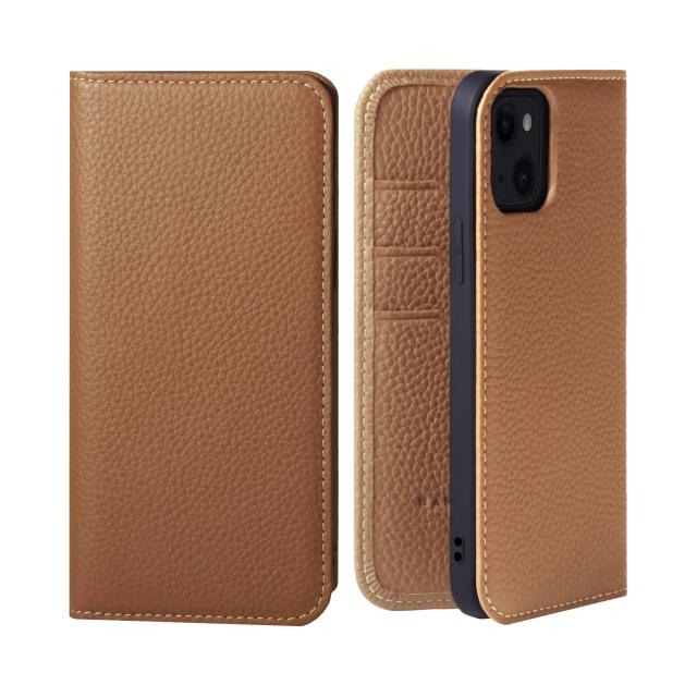 [HANATORA] iPhone13 ケース 手帳型 本革 シュリンクカーフレザー スマホケース 耐衝撃 磁石不使用 マグネットなし ハンドメイド ギフトにも最適品 ダイアリーケース Edel キャメル PH-13-Camel