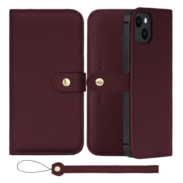 [HANATORA] iPhone15Plus ケース 手帳型 本革 シュリンクカーフレザー スマホケース スタンド機能 ベルトあり マグネットなし ワインレッド H1SPB-15Plus-Wine