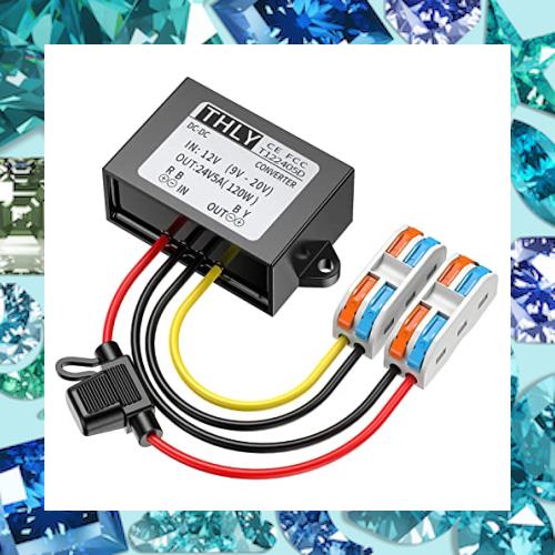 昇圧トランス、dcdc コンバーター 昇圧12V〜24V 5A 120W電源レギュレータヒューズ付き 24v 12v 変換 コンバーター安全取扱説明書 1. トランス 12vの出力端に接続されている負荷は、記載されている最大負荷電力を超えてはなりません。定格負荷が高くなると、パワーレギュレータが損傷します。 2.MAXでは長時間使用できません。デバイスの負荷が最大電力に近い場合は、より高い電力のコンバーターを選択してください。 3.提供された配線図に従ってコンバーターとデバイスを接続してください。 特徴: -ヒューズを取り付け、電化製品を保護し、火災や爆発のリスクを軽減します。セキュリティの強化。 -IP67保護等級、防水および耐衝撃保護。 -96%以上の電力変換効率。 -Si-Feコアの磁気ループ、高温耐性、超安定性。 DC 昇圧トランス 仕様: 材質:プラスチック、電子部品 入力:DC 12V(9V-20V) 出力:DC 24V 5A 120W ヒューズ:25A 変換効率:96%以上 過熱保護:150℃ 防水グレード:IP67 接続線の長さ:13cm(5.1インチ) 本体サイズ:74mm x 74mm x 31mm(L * W * H) 正味重量:264g 24v 12v 変換 防水 接続: 入力:赤(+)黒(-) 出力:黄色(+)黒(-) 保護:入力過渡高電圧保護、出力過電流保護、チップ過熱保護。 (入力短絡保護や逆接続保護がないことに注意してください。正しく配線してください。そうしないと、電力が焼損する可能性があります) パッケージに含まれるもの: 1 x DCブーストコンバータ 12V〜24V 5A 120W2個のワイヤーターミナルブロック”