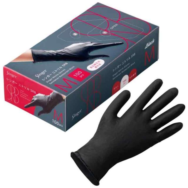宇都宮製作 シンガー ニトリル SRB 手袋 黒 100枚入り 使い捨て (M)