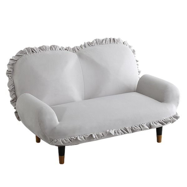 商品仕様: 大人かわいいインテリア フリル付きベロアソファ 2人掛け グレー 灰色&ブラック 黒