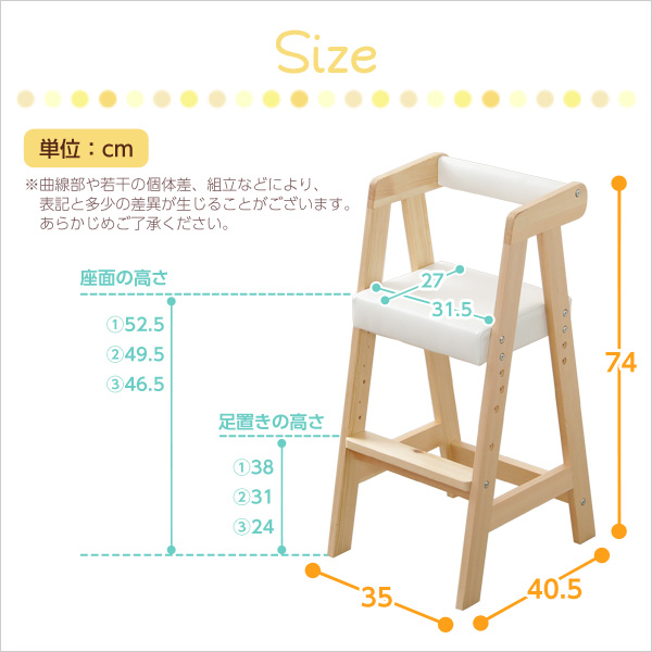 場所を取らないコンパクトサイズのキッズチェア!場所を取らないコンパクトサイズのキッズチェア!。丈夫な天然ビーチ材フレームで安心設計!。座面と足置きは3段階調節可能!。カラーは選べる5色展開!。商品開梱時にカッターナイフなどの刃物を使用しないようお願いいたします。